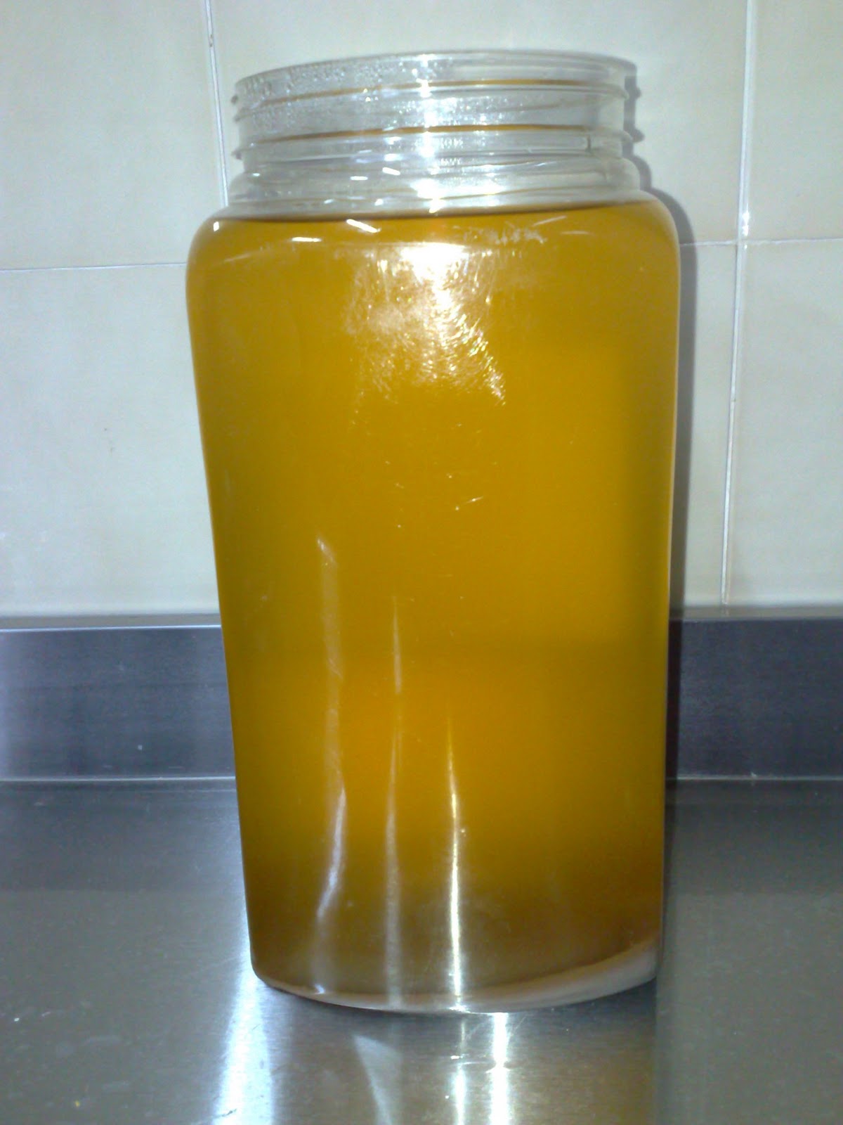 The fermentation process lasted about 3 to 5 days. On the fourth day, we opened the air-lock and gave the fermented mash a thorough stir and resealed it so that the brandy could clear up by allowing the sediment to settle down at the bottom. This sedimentation process took another 5 to 7 days. The alcohol content was measured by an alcohol meter which appeared that the mash only had about 8 to 9% of alcohol.